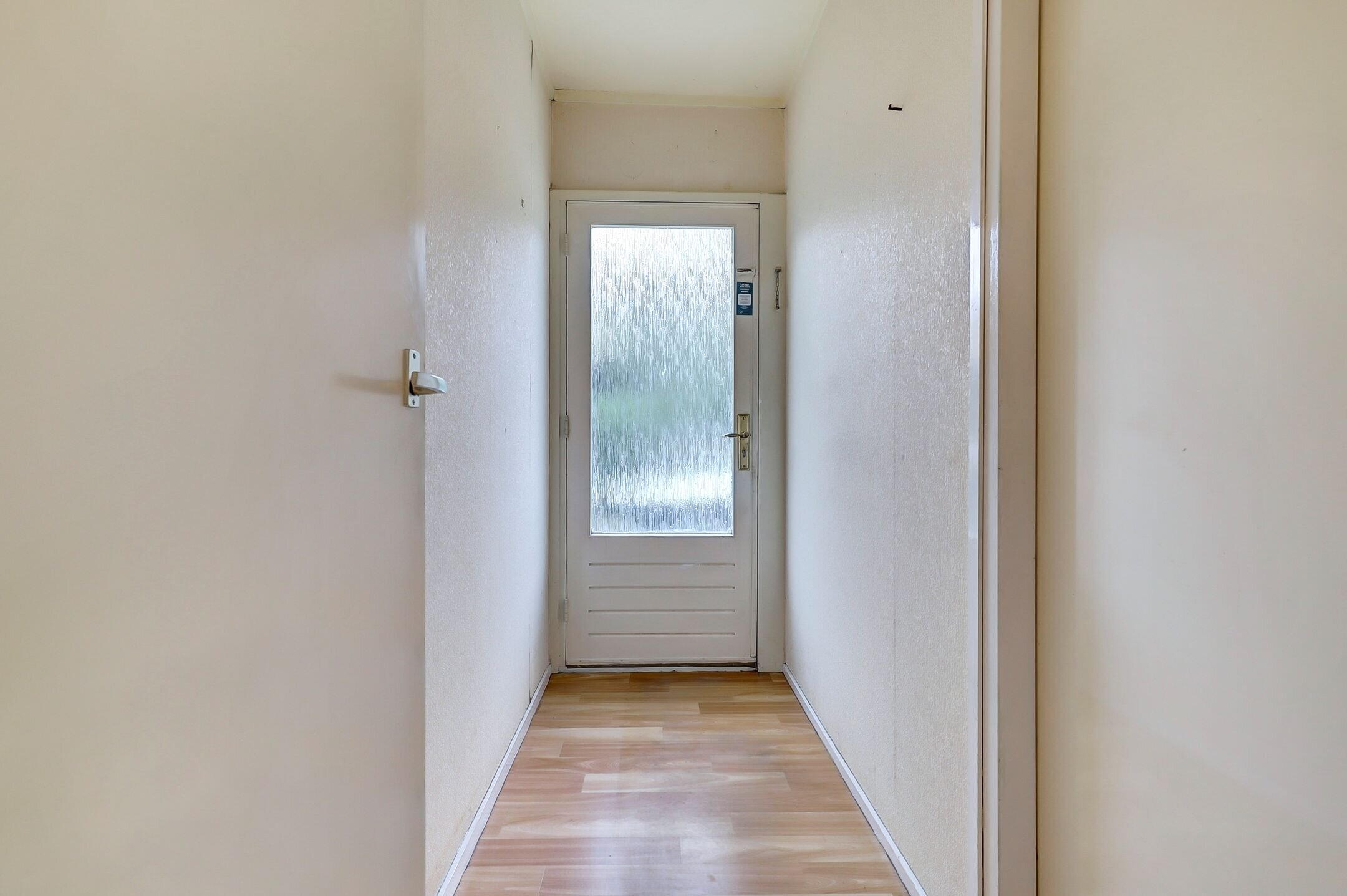 Wanneer je via de voordeur binnenstapt kom je eerst in een klein portaal dat toegang geeft tot de woonkamer.