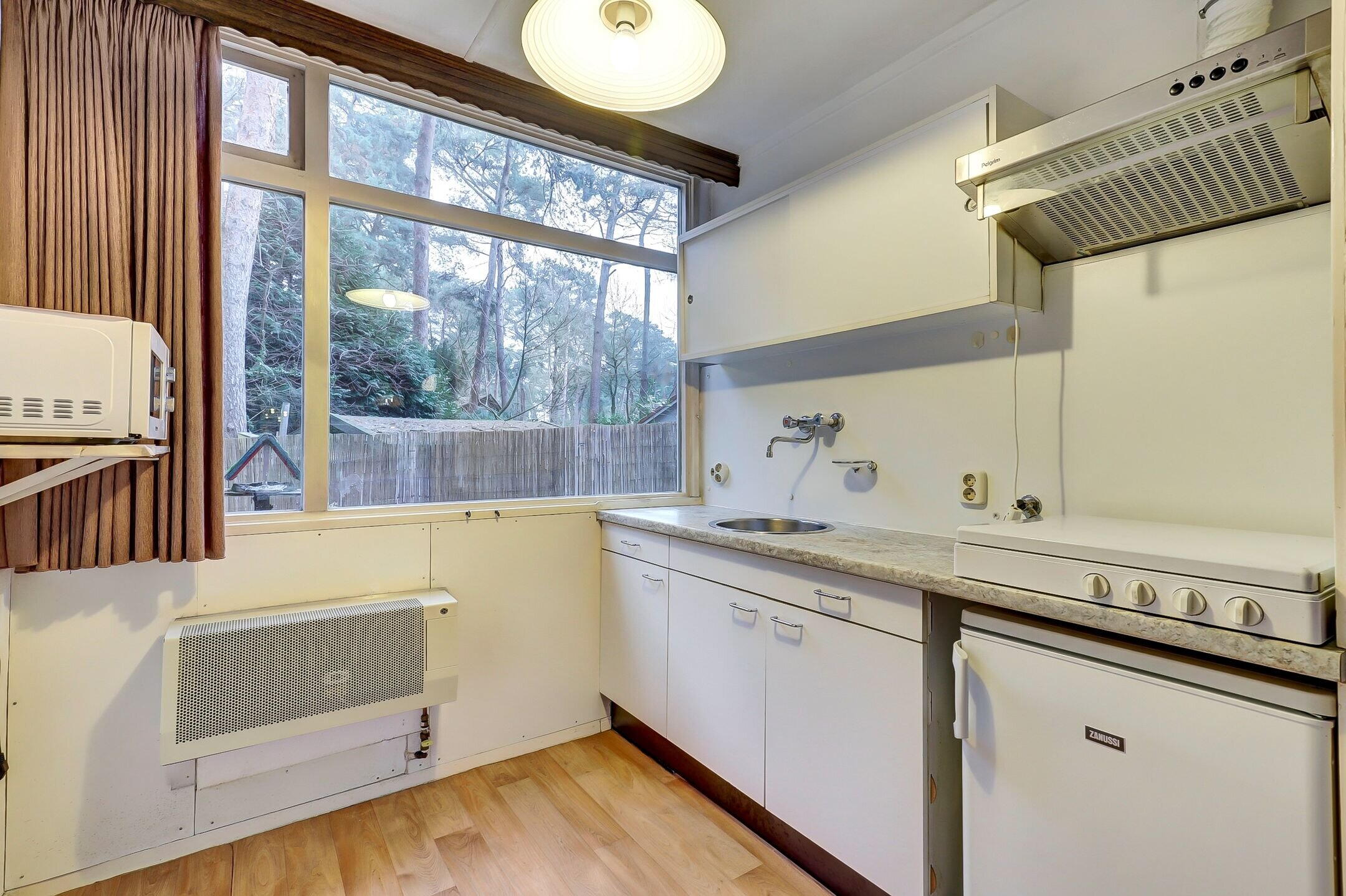 Zodra je doorloopt, valt meteen het licht op: dankzij de grote ramen aan de voorzijde en een extra zijraam stroomt er volop daglicht naar binnen en geniet je van het uitzicht op het park en de omliggende bomen. De woonkamer voelt hierdoor open en verbonden met de natuur. De vinylvloer met houtpatroon geeft de ruimte een warme uitstraling en vormt een fijne basis voor allerlei interieurstijlen.