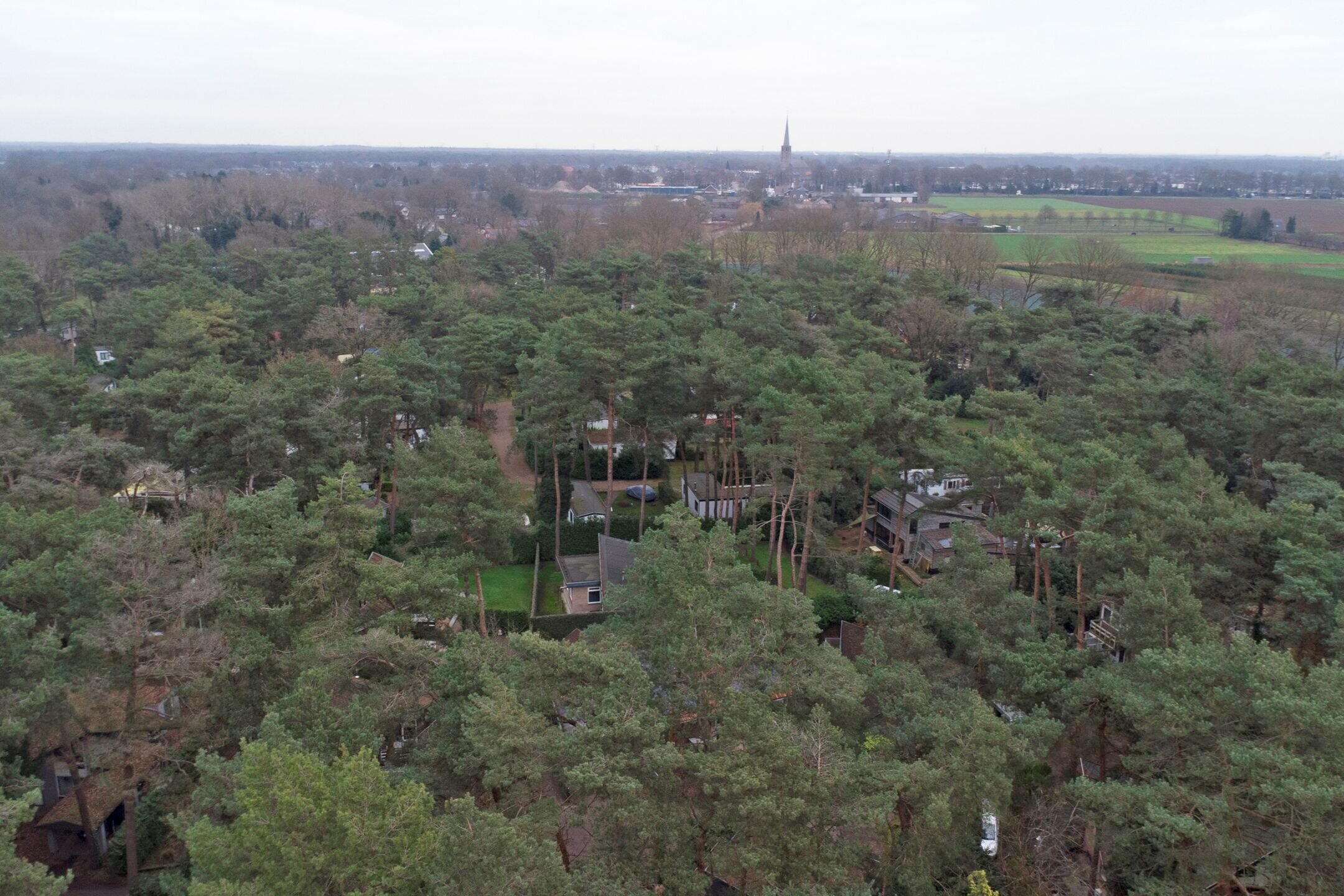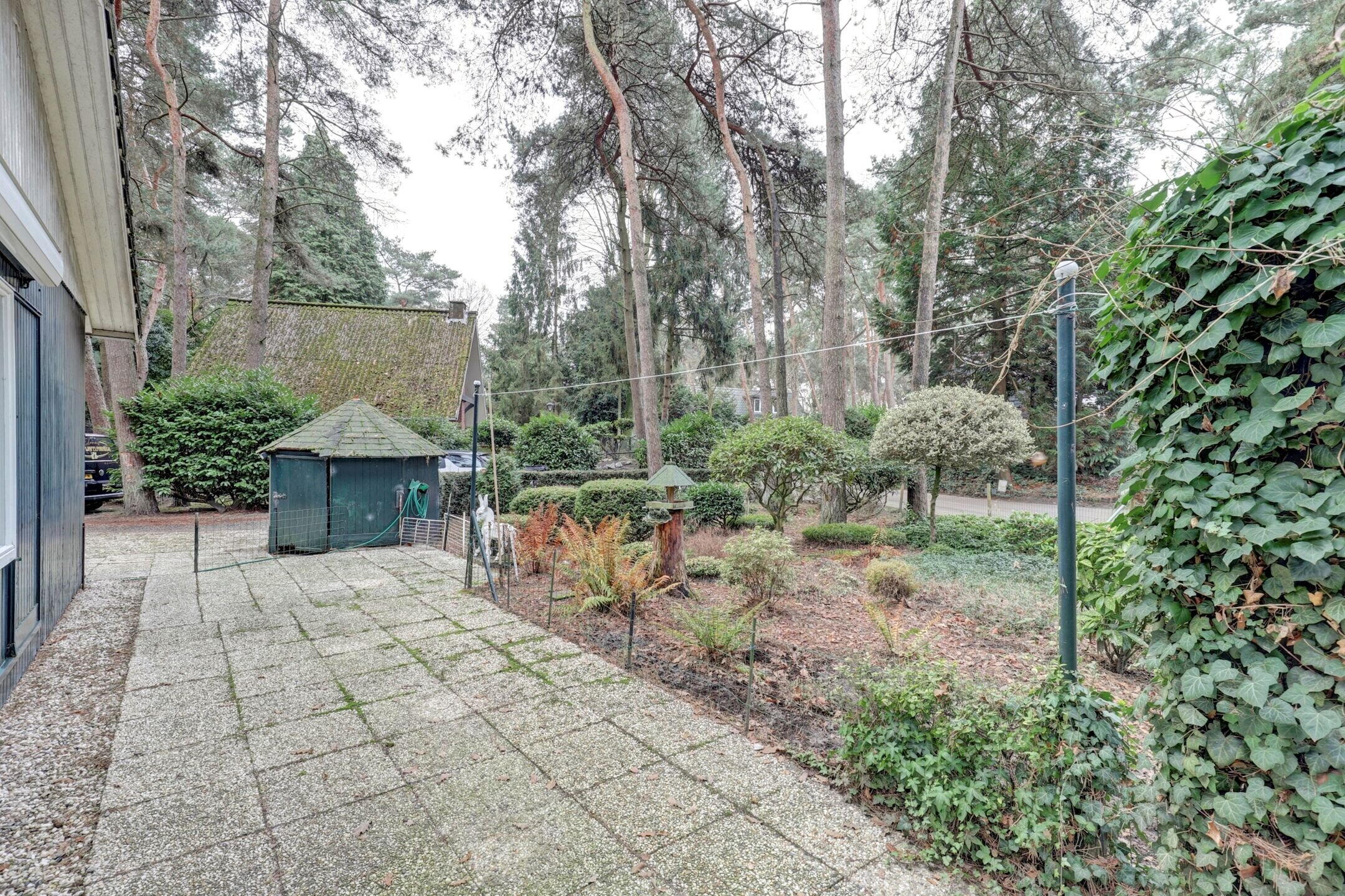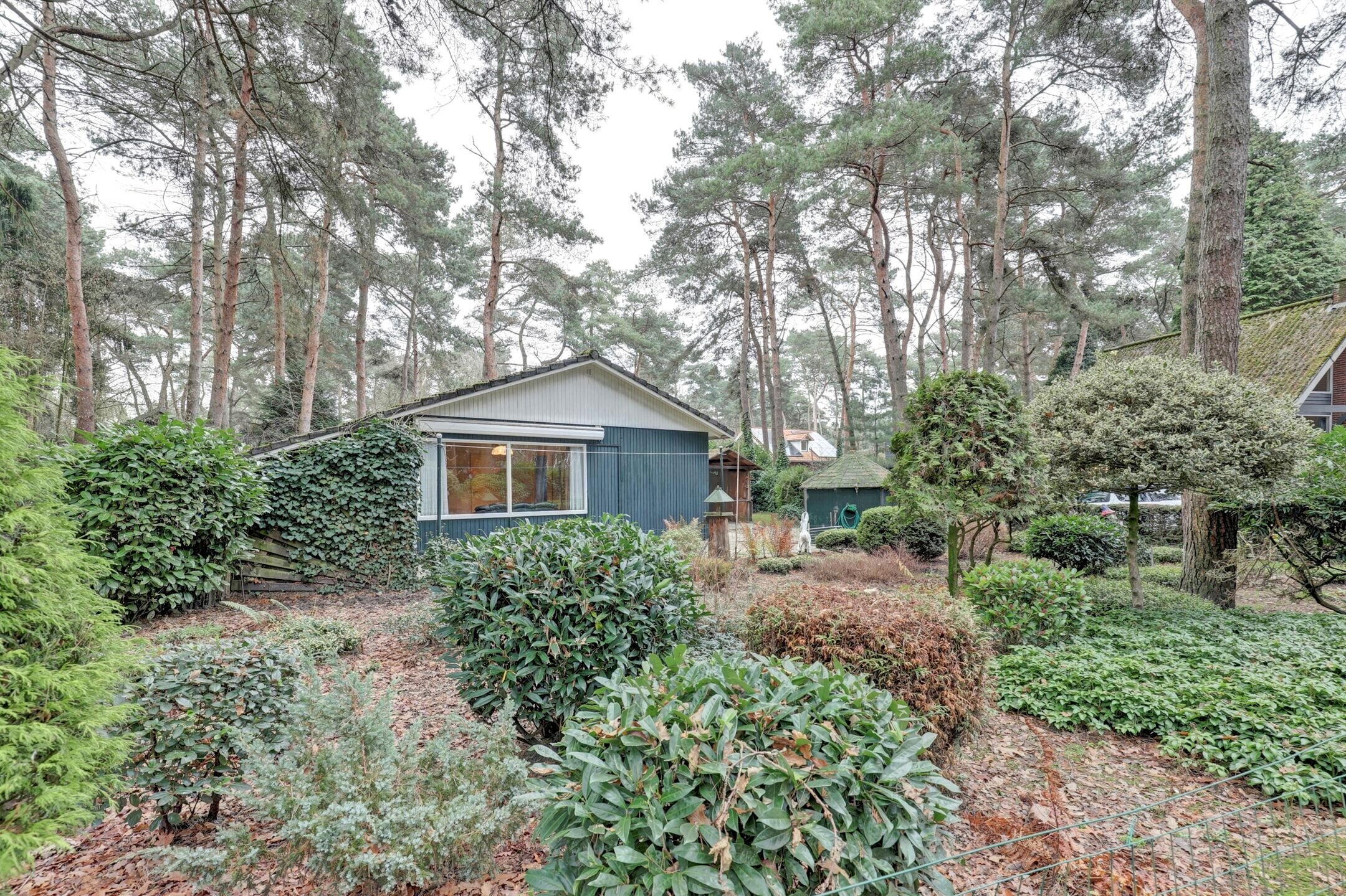 De tuin is grotendeels omheind, deels met een houten schutting en deels met gaaswerk, waardoor het geheel veilig en overzichtelijk is zonder dat het open karakter verloren gaat. Achter de woning vind je een afsluitbare berging/werkplaats, perfect voor het stallen van fietsen, tuingereedschap of het uitoefenen van een hobby. Verder staat er in de tuin een klein achthoekig tuinhuisje, een charmant detail dat extra opbergruimte biedt. De tuin zelf is speels ingericht met gazon, deels kunstgras, en een gedeelte dat is aangeplant met een gevarieerde mix van planten, bloemen en struiken. Tussen het groen staan de kenmerkende hoge bosbomen die niet alleen sfeer geven maar ook zorgen voor heerlijke schaduwrijke plekjes tijdens warme zomerdagen. Aan de voorkant van de woning ligt een fijn terras waar je heerlijk kunt zitten en genieten van het uitzicht over het park en de rust van de omgeving. Praktisch is de tuin ook voorzien van stopcontacten, een buitenkraan en verlichting waardoor je het hele jaar rond comfortabel buiten kunt zijn.
